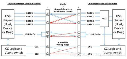 虽然结构上,type-c的引脚是中心对称的,但是接到soc上的USB TX/RX引脚还是只有一对,因此还是需要识别正反插的,