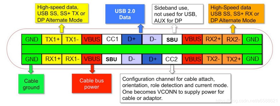 由于端口一致,线材两端接口也一直,为了能够区分两端USB设备的角色(Host/Device),必须有一套协商机制,便于进行角色确认,这部分通过CC(Configuration Channel)管脚进行设置。后面随着PD规范的面世,CC脚开始被用来做简单的半双工通信,用来完成POWER供给的协商
