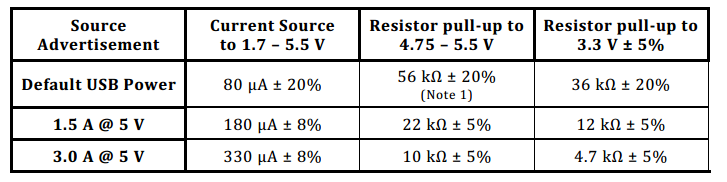 Rp有6个参数(5V档位和3.3V档位各3个),指示着不同的供电能力。