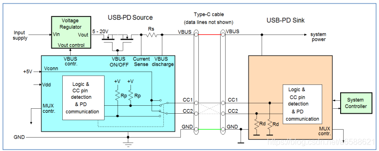 通过CC引脚,利用PD协议沟通,协商,PD Controler 发起请求,并得到回应