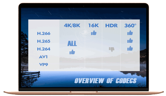 Video compression standards, especially lossy video codecs like HEVC, H.264, VP9 and AV1, are developed with the intention to cut redundant information without damaging quality much, and ease the burden of bandwidth during data transmission accordingly. The new codec VVC is no exception. As you may imagine, with the advance of video resolution, there might be H.267, H.268, etc in the future for 16K and higher. (Besides encoding videos with such lossy video codecs, there are several other ways for video compression.)