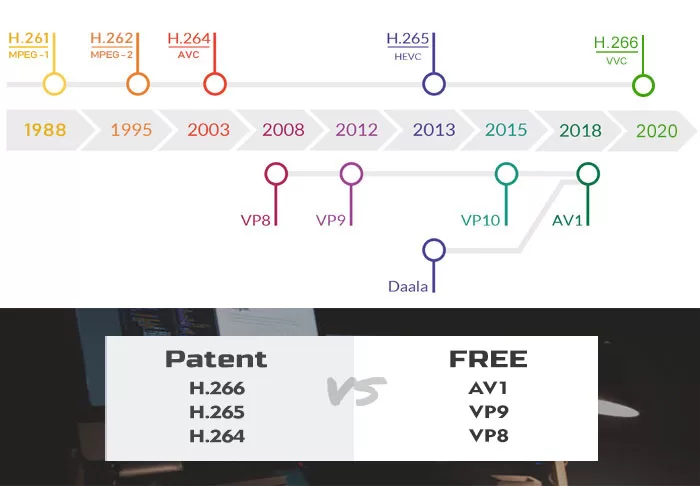 Compared with royalty-free video coding formats like AVI and VP9, H.26x series including H.266, H.265, H.264, etc. are proprietary with numbers of patent pool administrators.