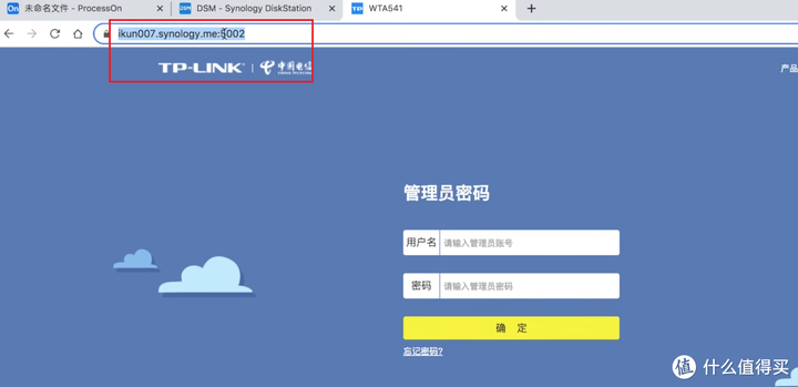 好的,现在访问『http://ikun007.synology.me:5002』,发现成功跳转到我TP主路由后台了,你在外面也可以用这串网址来远程管理主路由了,是不是很简单。大家就按这个方式,套用公式就行。