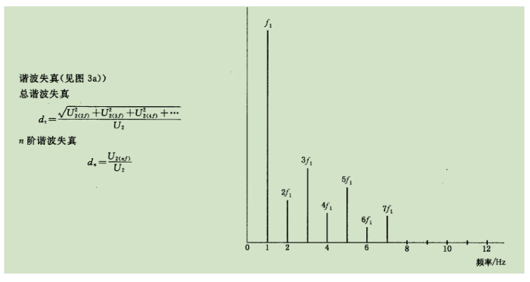 总谐波失真(THD)是描述mic幅度非线性的一个指标。“声系统和声系统设备中,幅度非线性会在输出端产生输入信号中不存在的信号。幅度非线性是频率,幅度和温度等因素的函数,甚至在信号幅度恒定时也是如此,因此它不是常量,有多种评价幅度非线性的方法^[3]^”。总谐波失真就是其中的一种方法。总谐波失真计算如图2.3^[3]^所示。