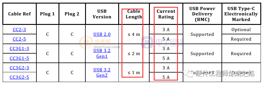 如果电源能够提供大于3.0A的电流,则应使用US PD规范来确定电缆的载流能力。