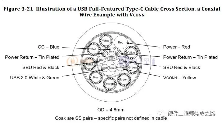 上图是标准的USB Type-C的电缆,高速信号差分对SDP都采用同轴线,信号地回流是通过屏蔽GND。