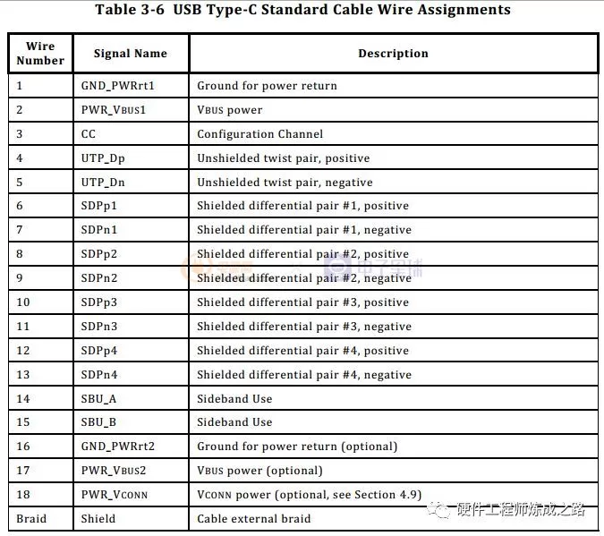 全功能USB Type-C电缆信号说明