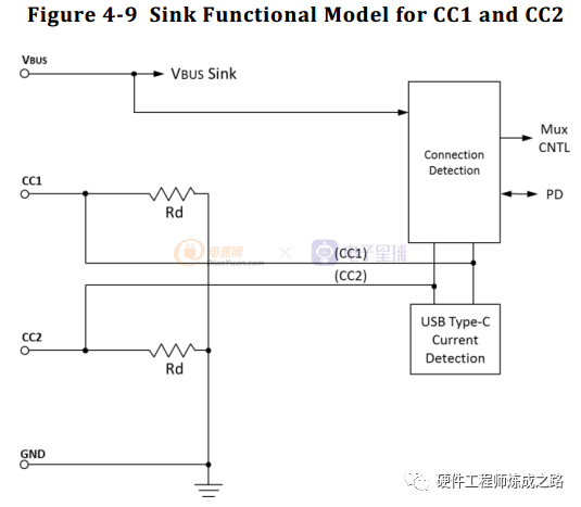 SINK通过CC引脚上拉的特性,来检测目前的USB高速数据链路。