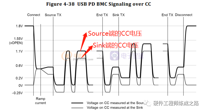 SINK通过检测电源VBUS是否存在,来判断Source的连接与否。