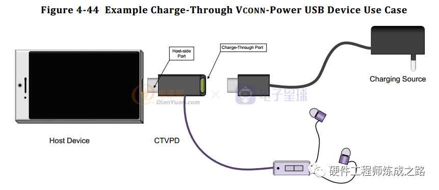 VPDs:VCONN-Powered USB Devices–Vconn驱动的USB设备VPAs和VPDs都是直接连接的sink,只需Vconn即可操作。