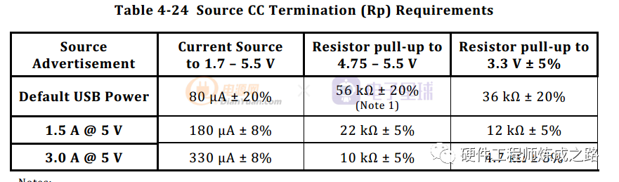 当Source和Sink处于持续状态,Source会根据需要改变Rp来设置最大电流输出能力。