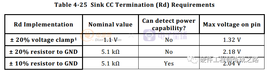 Sink会检测Rd上面的电压来获取能从Vbus上获得的最大电流值。